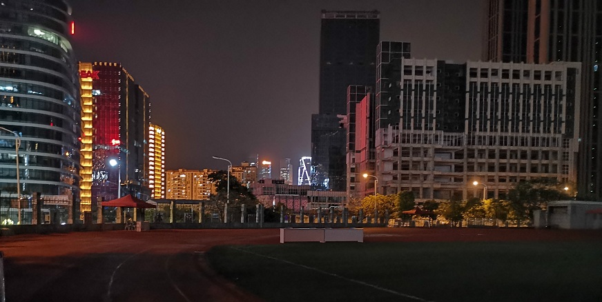 由于本次比賽在學(xué)校的操場舉辦,所以工作人員只能等到學(xué)校清場后才能進(jìn)來布場。觀音山片區(qū)美輪美奐的夜景為乏味又冗長的工作現(xiàn)場添上了一些樂趣。