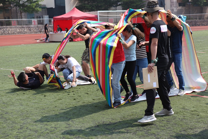 各隊(duì)的側(cè)重點(diǎn)各不相同。有的隊(duì)伍提前排兵布陣,并在關(guān)鍵時(shí)刻改變戰(zhàn)略,穩(wěn)中求勝。有的隊(duì)伍本著勇往直前的硬漢作風(fēng),風(fēng)風(fēng)火火的殺出一條血路。當(dāng)然其中也不乏嬌俏可人的娘子軍們,巾幗不讓須眉,在團(tuán)隊(duì)配合上力挽狂瀾。當(dāng)然也有的隊(duì)伍玩得很盡興,熱門項(xiàng)目“旱地龍舟”“無敵風(fēng)火輪”“不倒森林”“同心擊鼓”“合力建塔”“袋鼠跳跳跳”統(tǒng)統(tǒng)不落下。