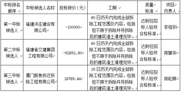 觀音山C04地塊臨時(shí)建筑拆除工程中標(biāo)候選人公示