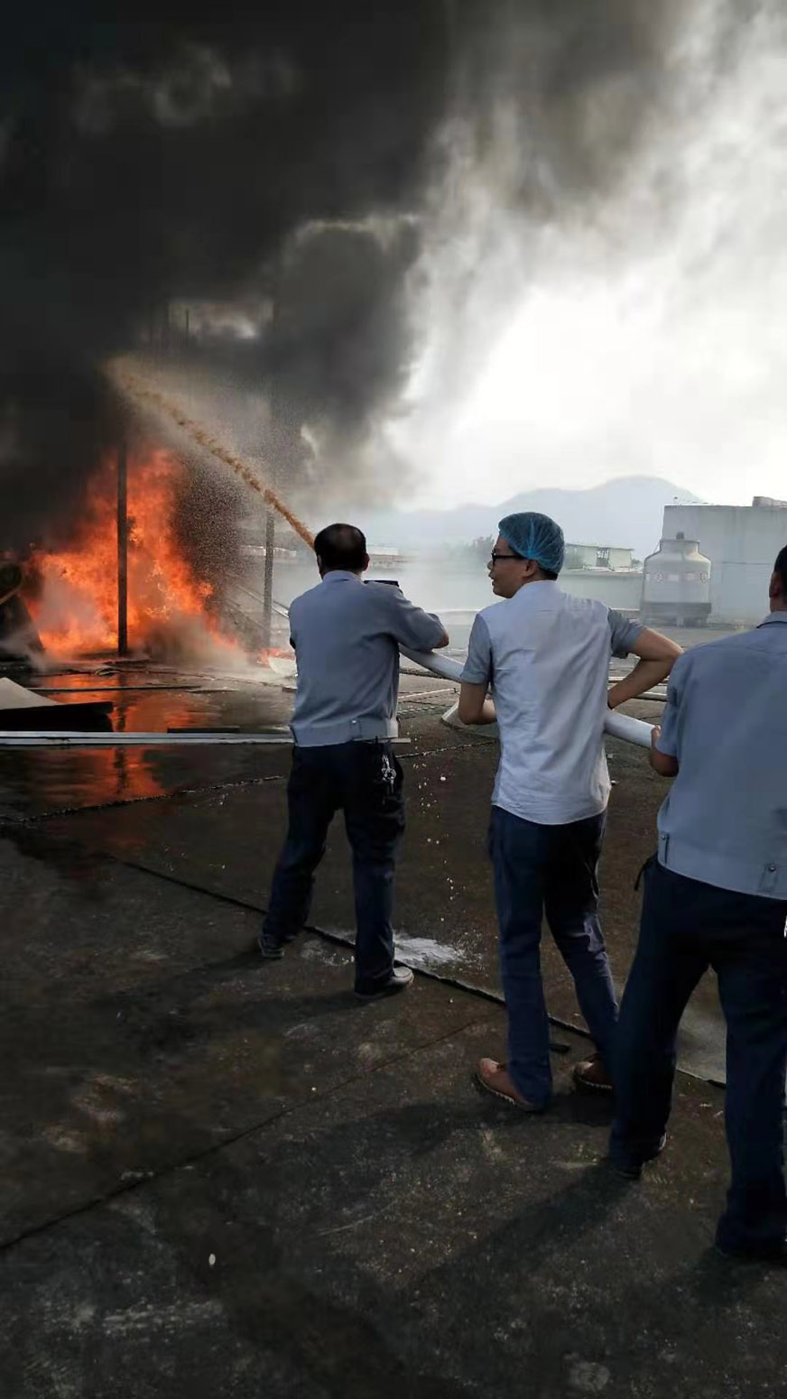 7月16日下午15:30許,巡邏人員發(fā)現(xiàn)8號廠房廈門科思達(dá)衛(wèi)生制品有限公司樓頂冒起了濃煙?;馂?zāi)無情,警情就是命令。同安工業(yè)集中區(qū)思明園服務(wù)中心立即啟動應(yīng)急機(jī)制,調(diào)集消防小分隊奔向火災(zāi)事發(fā)地。經(jīng)過現(xiàn)場火情偵察,該企業(yè)在樓頂使用“電焊機(jī)”焊接通風(fēng)設(shè)備,焊渣飛濺引起旁邊的煙囪燃燒,煙囪內(nèi)壁的油渣和殘留物延伸到每層車間,情況十分緊急。服務(wù)中心應(yīng)急消防小分隊組織員工疏散、切斷電源、架設(shè)水槍……經(jīng)過近10多分鐘撲救,火災(zāi)成功撲滅。