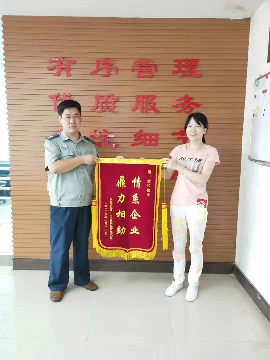 廈門市全和物業(yè)管理有限公司同安工業(yè)集中區(qū)思明園服務(wù)中心的勇士們處置及時,臨危不亂,為業(yè)主挽回了巨大損失,獲得業(yè)主的高度贊揚(yáng)與認(rèn)可,被送來“情系企業(yè),鼎力相助”的錦旗。