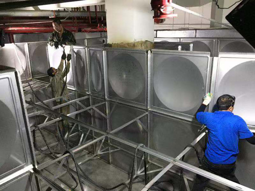 2018年12月初,東坪花園小區(qū)二次供水水箱的不銹鋼箱體存在漏水現(xiàn)象,同時(shí)與箱體連接的出水管道也腐蝕銹穿。若不盡快進(jìn)行維修,可能會(huì)出現(xiàn)爆管甚至整個(gè)二次供水儲(chǔ)水箱爆箱的事故,后果將不堪設(shè)想。經(jīng)過(guò)幾家有專業(yè)資質(zhì)的單位進(jìn)行現(xiàn)場(chǎng)查看,均表示無(wú)法維修,只能進(jìn)行更換。為了確保小區(qū)用水安全,公司決定啟動(dòng)緊急維修程序,進(jìn)行水箱及管道的更新改造。