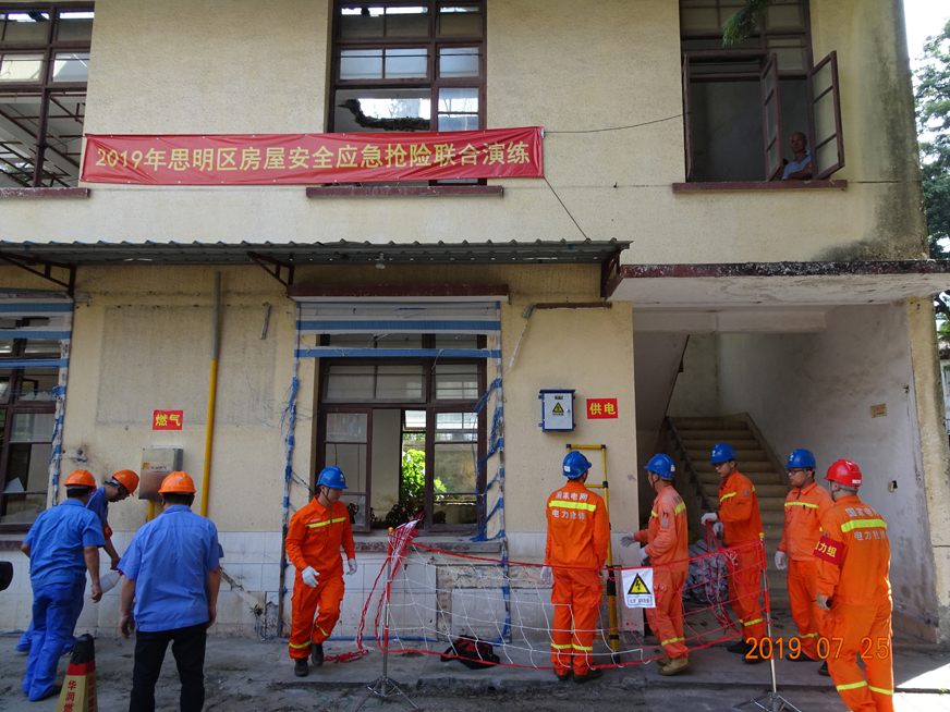 7月25日思明區(qū)建設(shè)管理局開(kāi)展2019年思明區(qū)房屋安全應(yīng)急搶險(xiǎn)聯(lián)合演練,模擬危舊房由于年久失修,造成鋼筋混凝土樓板及陽(yáng)臺(tái)板的險(xiǎn)情,危及房屋內(nèi)人員和公共安全。演練通過(guò)開(kāi)展人員疏散與轉(zhuǎn)移,停水、停電與停氣,鋼筋混凝土樓板臨時(shí)加固和頂撐支護(hù),鋼筋混凝土陽(yáng)臺(tái)板頂撐支護(hù)等應(yīng)急搶險(xiǎn)內(nèi)容,旨在提高應(yīng)對(duì)房屋安全突發(fā)性事件的應(yīng)急處置能力,加強(qiáng)思明區(qū)房屋應(yīng)急工作相關(guān)部門、隊(duì)伍人員之間的應(yīng)急響應(yīng)和協(xié)同能力,保證房屋安全應(yīng)急搶險(xiǎn)工作高效有序進(jìn)行。