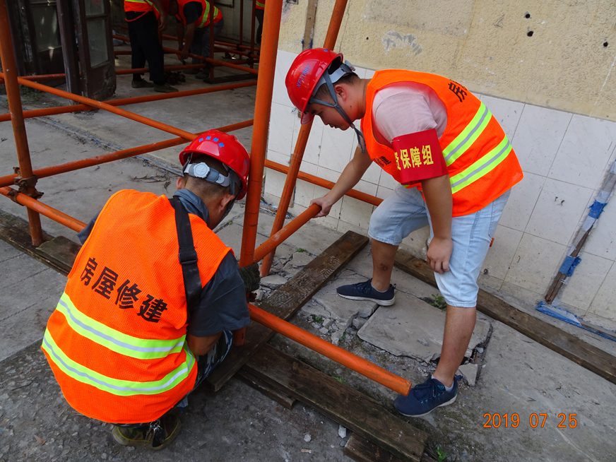 房屋搶險(xiǎn)組組長(zhǎng)王小龍頂撐加固指揮
