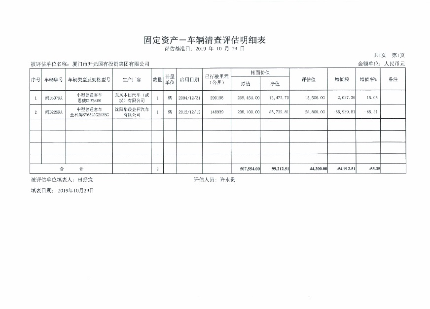 3.《思明控股車輛清查評估明細(xì)表》。