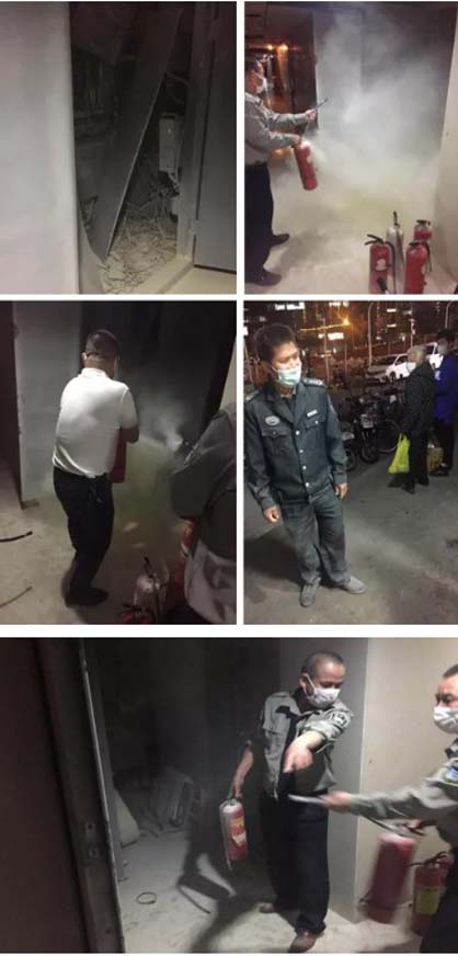 平常不忘消防應(yīng)急演練,緊要關(guān)頭派上場(chǎng)。2020年4月17日18點(diǎn)45分觀音山公寓消防系統(tǒng)警報(bào)響起。監(jiān)控室值班員發(fā)現(xiàn)塔埔路100號(hào)19樓有濃煙,馬上通知當(dāng)班維序員上樓查看,確認(rèn)是18樓弱電井內(nèi)起火。服務(wù)處即刻啟動(dòng)消防應(yīng)急預(yù)案,撥打119火災(zāi)報(bào)警電話,向上級(jí)匯報(bào)情況?;鹎榫褪敲?,物業(yè)維序員即刻集結(jié)到現(xiàn)場(chǎng),首先切斷樓層電源,引導(dǎo)樓層居民疏散,現(xiàn)場(chǎng)在確認(rèn)火勢(shì)不大的情況下,維序員運(yùn)用日常消防演練的知識(shí),采用干粉滅火器對(duì)著火點(diǎn)滅火;18:53分明火被撲滅。由于發(fā)現(xiàn)及時(shí)、撲救及時(shí),著火范圍沒(méi)有擴(kuò)散,沒(méi)有人員傷亡。