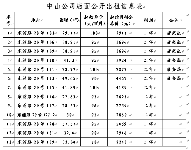 1、擬出租店面地址、建筑面積、租金底價(jià)、租賃期限等見下表: