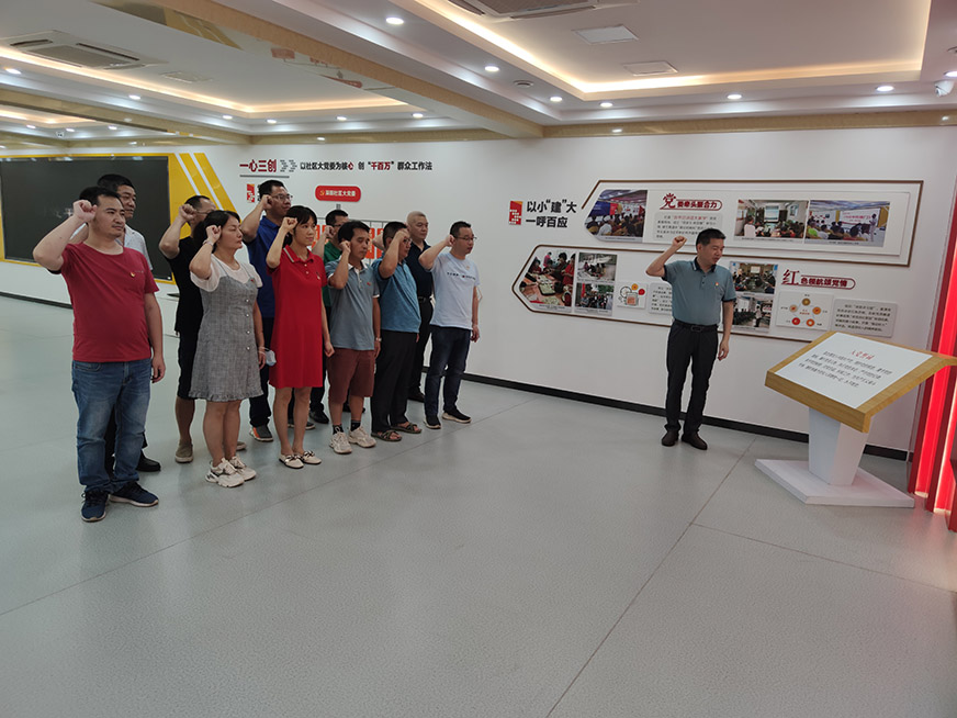 隨著參觀接近尾聲時(shí),在這重要的時(shí)刻,重要的地點(diǎn),黨支部書記陳睿武帶領(lǐng)大家,面向黨旗,莊嚴(yán)地舉起右手,握拳宣誓,重溫入黨誓詞:“我志愿加入中國(guó)共產(chǎn)黨,擁護(hù)黨的綱領(lǐng),遵守黨的章程,履行黨員義務(wù),執(zhí)行黨的決定,嚴(yán)守黨的紀(jì)律,保守黨的秘密,對(duì)黨忠誠(chéng),積極工作……”短短的80個(gè)字,句句千鈞、擲地有聲,讓全體黨員再次接受洗禮,銘記莊嚴(yán)的承諾,牢記共產(chǎn)黨員的初心和使命,堅(jiān)定對(duì)黨的事業(yè)奮斗終生的決心。參觀結(jié)束后,大家也紛紛表示將會(huì)從深田社區(qū)的紅色印記中汲取力量,牢記初心使命,以更飽滿的熱情積極投身到工作中去,切實(shí)發(fā)揮黨員的先鋒模范作用,為企業(yè)的發(fā)展添磚加瓦。