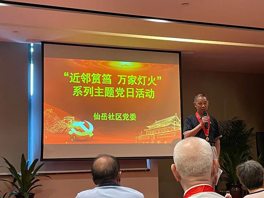 最后,仙岳社區(qū)老黨員朱喜田分享了他1976年作為灤平鐵道兵11師第五十三團副營長,參與唐山大地震搶修鐵路舟橋的經(jīng)歷。雖然長期的鐵路工作,讓朱喜田老人落下不少職業(yè)病,但他依然積極樂觀,始終把“熱血鑄就鋼鐵大動脈”作為人生的座右銘。脫下軍裝,轉(zhuǎn)換陣地,他積極參與社區(qū)事務(wù)、定期為黨員上黨課,用實際行動繼續(xù)弘揚抗震精神,發(fā)揮先鋒模范作用,讓黨旗在基層社區(qū)高高飄揚。