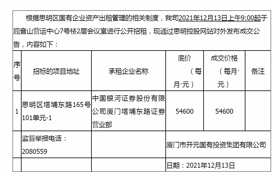 招租的成交公告