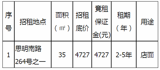 備注:意向承租人對(duì)上述情況應(yīng)有充分了解。詳細(xì)招租規(guī)則、房屋租賃合同樣本、承諾函、報(bào)價(jià)單等招租文件于報(bào)名參加時(shí)領(lǐng)取。