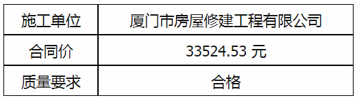 根據(jù)招投標(biāo)管理辦法、思明控股辦[2021]14號(hào)文《采購(gòu)招標(biāo)管理辦法》的相關(guān)規(guī)定,我廠(chǎng)負(fù)責(zé)故宮路95號(hào)室外雨水管拆除及新管安裝工程直接發(fā)包廈門(mén)市房屋修建工程有限公司實(shí)施,現(xiàn)通過(guò)思明控股網(wǎng)站于2021年12月 日至2021年12月 日進(jìn)行成交結(jié)果公示,內(nèi)容如下: