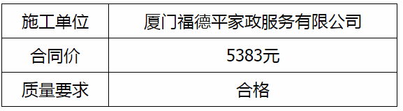 根據(jù)招投標管理辦法、思明控股辦[2021]14號文《采購招標管理辦法》的相關規(guī)定,我司負責龍山文創(chuàng)園工業(yè)設計中心北側(cè)外墻、觀光電梯外立面清洗工程直接發(fā)包廈門福德平家政服務有限公司實施,現(xiàn)通過思明控股網(wǎng)站于2021年12月27日至2021年12月30日進行成交結(jié)果公示,內(nèi)容如下: