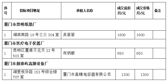 思明區(qū)屬托管企業(yè)出租房產(chǎn)成交公告
