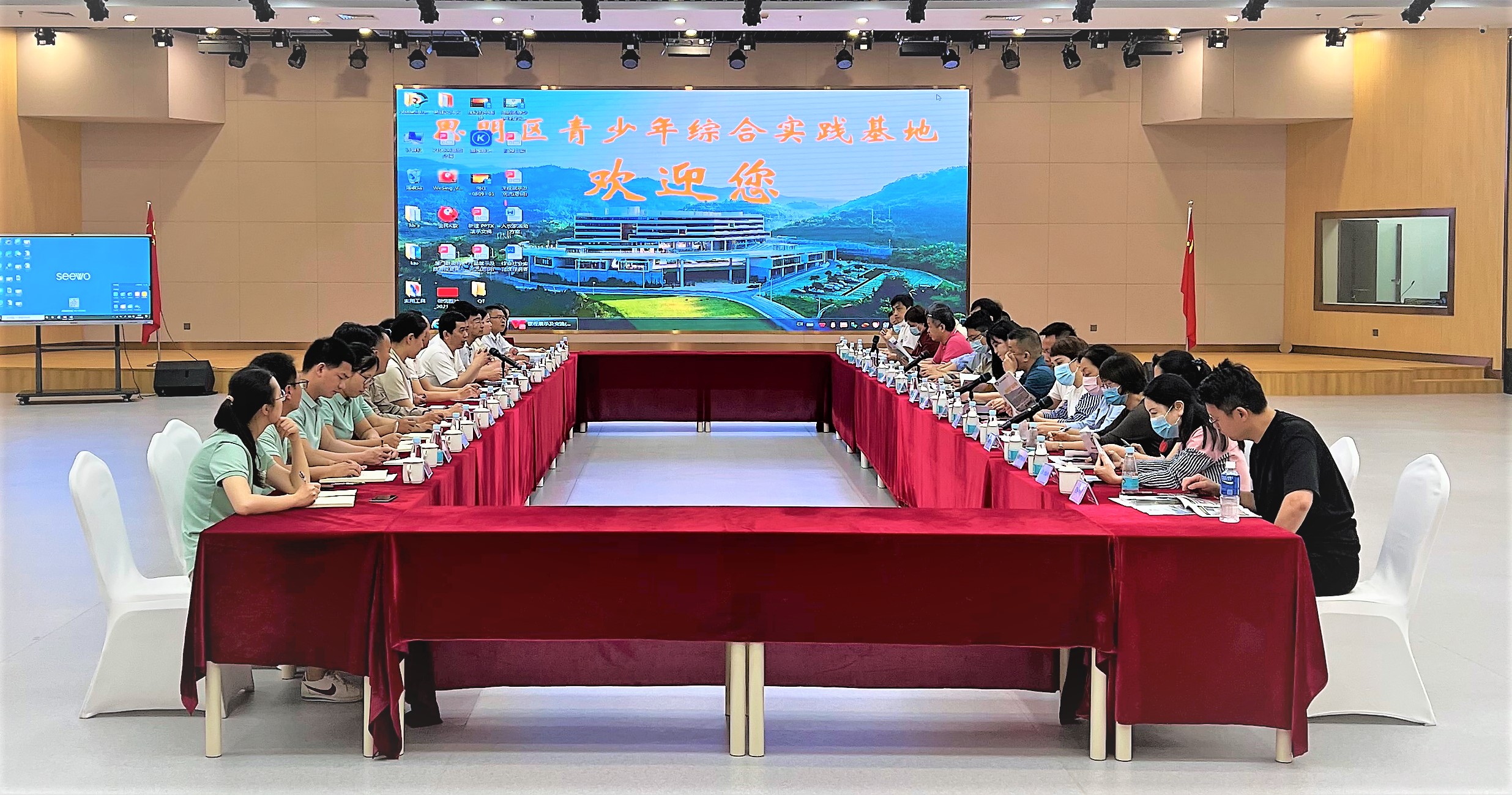 上午10許,校長(zhǎng)調(diào)研團(tuán)一行正式抵達(dá)基地。在學(xué)生禮堂,基地對(duì)校長(zhǎng)調(diào)研團(tuán)的到來(lái)表示熱烈歡迎,并簡(jiǎn)要介紹了基地的發(fā)展歷程、總體規(guī)劃和經(jīng)營(yíng)狀況。廈門(mén)鼓旅研學(xué)教育管理有限公司副主任李淡對(duì)基地課程設(shè)置、師資情況等作了詳細(xì)介紹。