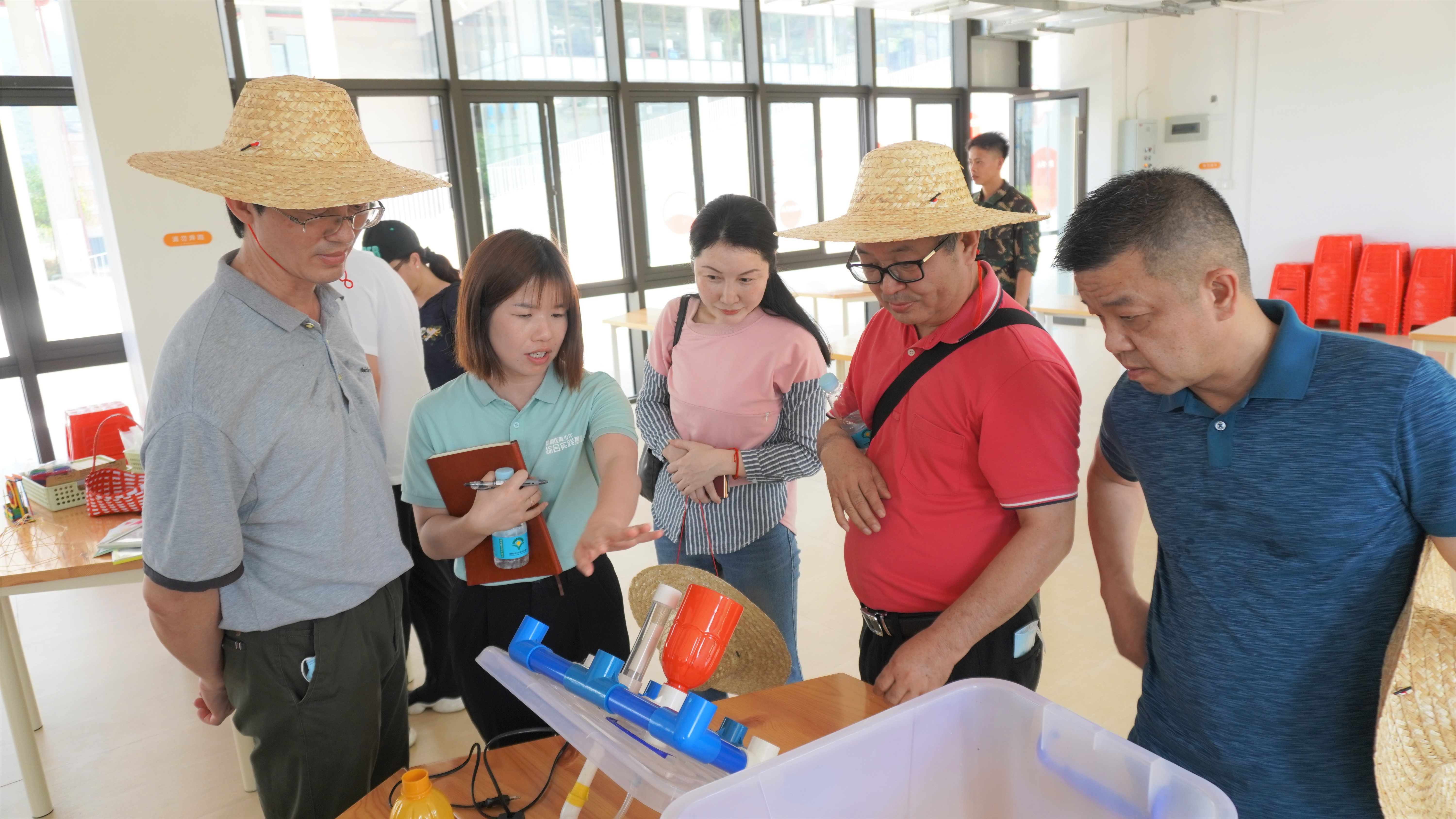 校長(zhǎng)調(diào)研團(tuán)先后參觀了基地教學(xué)樓、課程教室、農(nóng)耕文化館、室內(nèi)運(yùn)動(dòng)館、學(xué)生宿舍、學(xué)生餐廳、智慧農(nóng)業(yè)大棚、戶(hù)外實(shí)踐農(nóng)田等,對(duì)基地交通、課程設(shè)置、場(chǎng)地分布、課程執(zhí)行流程、師資團(tuán)隊(duì)、用餐住宿配套等方面進(jìn)行實(shí)地查看并詳細(xì)了解。在關(guān)注每一個(gè)細(xì)節(jié)的同時(shí),與基地教研團(tuán)隊(duì)探討每一個(gè)課程設(shè)置對(duì)學(xué)生的教育意義及價(jià)值,努力實(shí)現(xiàn)讓學(xué)生“研有所思、學(xué)有所獲”。