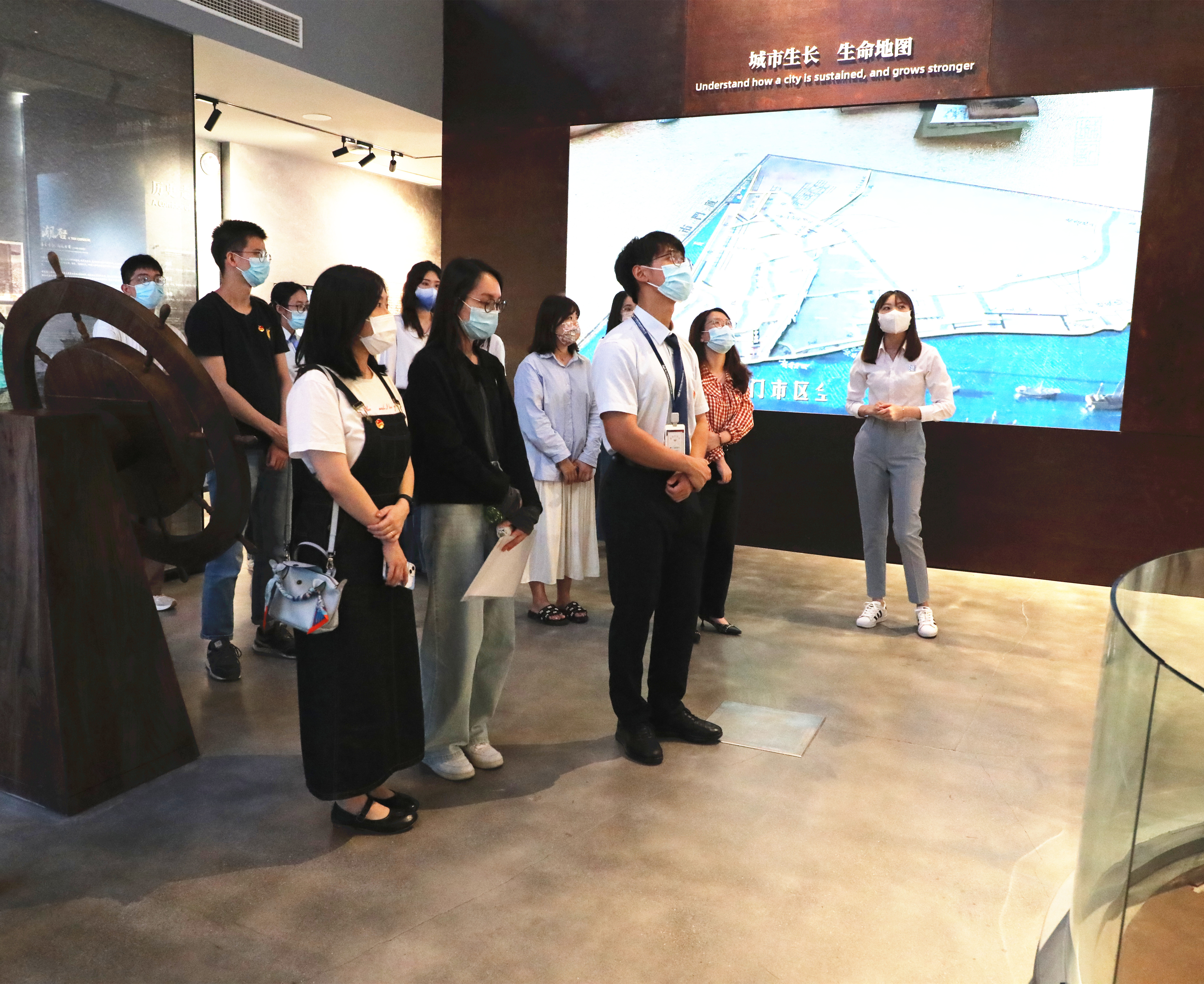 團員們首先參觀了城記·中山路展館。這是思明城區(qū)文化更新一個極具代表性、藝術性的項目,自今年4月正式開放以來,受到市民游客的廣泛關注。建筑是城市的編年史,中山路更是廈門經(jīng)濟騰飛與發(fā)展的縮影。通過展館內(nèi)“人文之光”“歷史走廊”“記憶場景”“未來暢想”四個主題講述,大家在鮮活的場景中,聆聽、體驗中山路的“前世今生”;也通過這場穿越之旅,大家深切感受到廈門這座城市的變遷與發(fā)展。歲月不居,時節(jié)如流,改革開放四十年光陰一倏而過,廣大青年作為城市歷史的見證者和參與者,建設廈門高素質(zhì)高顏值現(xiàn)代化國際化城市重任在肩、時不我待。