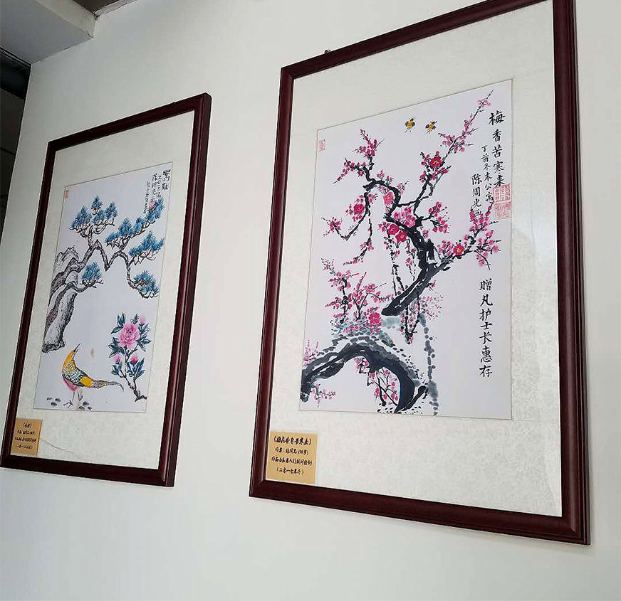 每個(gè)人都有希望擁有展示自己能力的舞臺(tái),不論是小孩、成年人還是老人。源泉山莊老年公寓的書(shū)畫(huà)室,翰墨馨香,經(jīng)常有愛(ài)好書(shū)畫(huà)的老人到這里寫(xiě)寫(xiě)畫(huà)畫(huà)。平常有興趣的人會(huì)到書(shū)畫(huà)室欣賞老人的作品,這里也成了前來(lái)公寓參觀的人必到之處,他們看了老人書(shū)畫(huà)作品后不禁豎起大拇指稱贊。書(shū)畫(huà)文化是我司打造養(yǎng)老文化的重要舉措之一。公司羅錦龍董事長(zhǎng)曾多次指出,要將老人的書(shū)畫(huà)作品上裱掛出,體現(xiàn)我司養(yǎng)老文化氣息。為此,公司多次組織運(yùn)營(yíng)部、資產(chǎn)與后勤保障部等相關(guān)人員,挑選一些優(yōu)秀的書(shū)畫(huà)作品,用精美畫(huà)框裱起來(lái),在1樓大廳和7樓、9樓開(kāi)辟了3個(gè)展示欄,讓所有到我們公寓的人,能夠一目了然看到這些美麗書(shū)畫(huà)。
