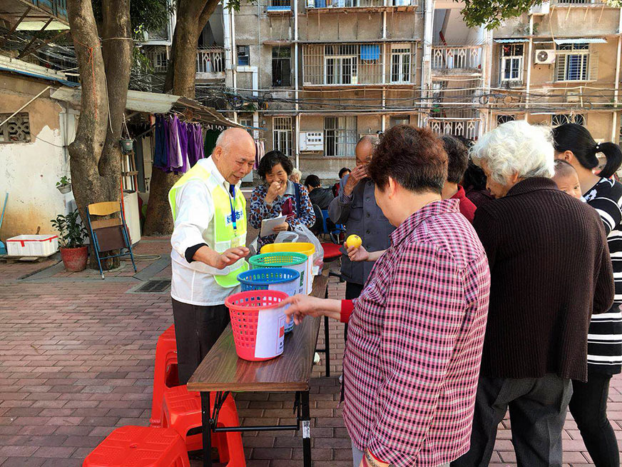 “阿姨,您好,我們是志愿者,這是垃圾分類宣傳冊(cè),里面有詳細(xì)講解了可回收物、廚余垃圾、有害垃圾及其他垃圾的分類,特別要注意干濕分離,有害物品單獨(dú)放,促進(jìn)資源的循環(huán)利用,在小區(qū)的入口還有垃圾分類現(xiàn)場(chǎng)演示小游戲,如果有時(shí)間您可以下樓去參與……”簡單的話語,傳遞了我們的用心和初心。