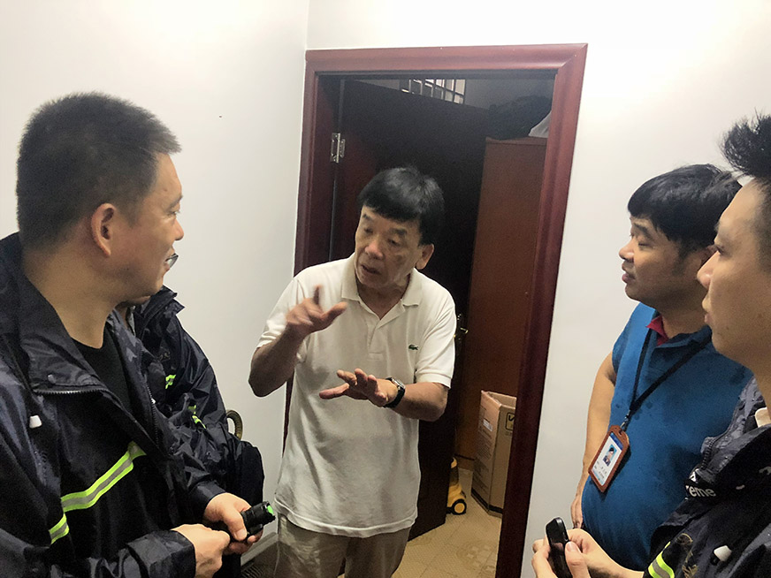 公司領導與工作人員入戶排查地勢低洼地帶房屋