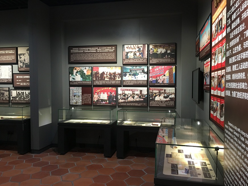 陳列館分為三部分,一樓是廈門工運(yùn)史展,二樓是改革開放40年廈門工會(huì)工作成果展,三樓是羅揚(yáng)才、楊世寧烈士工作場(chǎng)景復(fù)原。全體黨員干部認(rèn)真傾聽現(xiàn)場(chǎng)工作人員的講解,了解廈門早期產(chǎn)業(yè)工人的誕生、發(fā)展史以及改革開放40年廈門總工會(huì)工作成果。