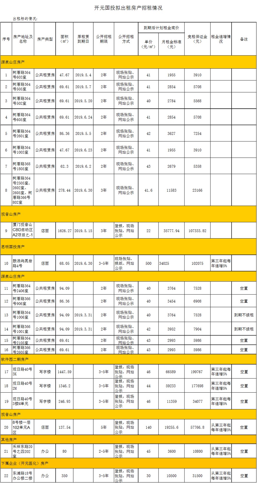 開(kāi)元國(guó)投2019年4-6月到期、空置房產(chǎn)公開(kāi)招租