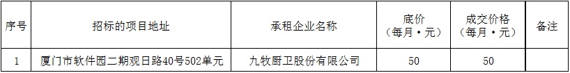根據(jù)思明區(qū)國有企業(yè)資產(chǎn)出租管理的相關(guān)制度,我司2019年4月11日上午9:00于觀音山營運中心2號樓2層2號會議室進行公開招租現(xiàn)場開標,現(xiàn)通過思明控股網(wǎng)站對外發(fā)布成交公告。內(nèi)容如下: